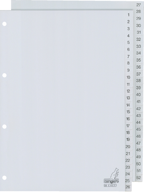 Tabbladen Kangaro 4-gaats G452C 1-52 genummerd grijs PP