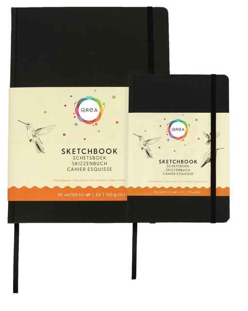 Of je nu een beginnende tekenaar bent of een ervaren kunstenaar, het tekenboek van Qrea is dé perfecte metgezel voor al je creatieve ideeën. Dit stijlvolle A5-boek heeft een stevige zwarte harde kaft met afgeronde hoeken en straalt klasse en duurzaamheid uit. De 80 vellen (160 pagina's) van 100 gram FSC-gecertificeerd papier zorgen voor een soepele tekenervaring, ideaal voor schetsen, tekeningen en notities. Dankzij het handige elastiek blijft het boek netjes gesloten, en door het compacte formaat neem je het gemakkelijk overal mee gericht. Ook verkrijgbaar in A4.