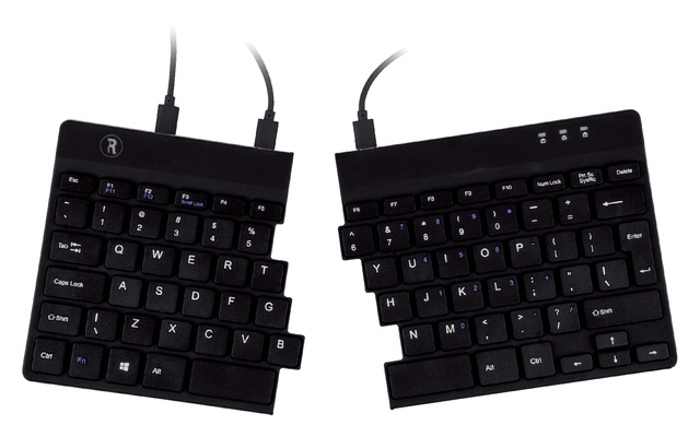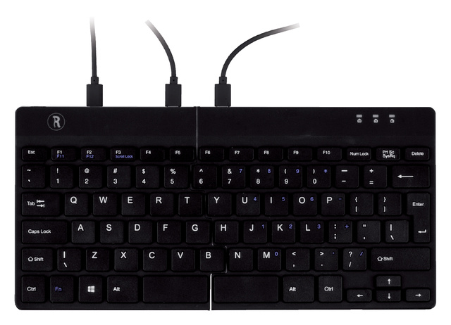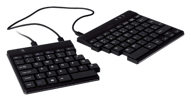 * R-Go Tools Split is een gesplitst, compact en lichtgewicht toetsenbord. * U stelt hem traploos in, in iedere gewenste hoek van 0 tot 30 °. * Dit Plug and Play toetsenbord heeft een korte reikafstand naar de muis, zodat u binnen schouderbreedte kunt werken voor een ergonomisch verantwoorde werkhouding. * Het toetsenbord is volledig inklapbaar, zodat hij uitstekend in iedere laptoptas past. * De toetsen zijn even groot als die van een laptop, dus groot genoeg voor de wat grotere vingers. * Afmeting 343x152x25mm. * Kleur zwart. Minder geschikt voor Apple producten.