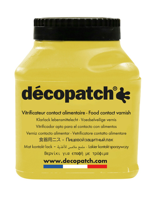 Decopatch is al talloze jaren mateloos populair onder knutselaars en mensen met een creatieve inslag. deze Decopatch is geschikt voor alle oppervlakken die in contact komen met voedselproducten. Ideaal voor het decoreren van fruitmanden, dienbladen, borden, enz., en zelfs de voerbak van je hond! De Vernis verbetert de bescherming van Décopatch lijm, waarmee het perfect compatibel is. Het wordt aanbevolen voor binnengebruik. Eenmaal droog (ongeveer 30 minuten), maakt het de decoraties bestendiger tegen temperatuur, vochtigheid en schoonmaakmiddelen. Oplosmiddelvrij. * Niet geschikt voor in de vaatwasser of magnetron. * Geschikt voor kinderen vanaf 5 jaar.* Inhoud: 180ml vernis geschikt voor voedselcontact. * Geproduceerd in Frankrijk, nabij Lyon (69).