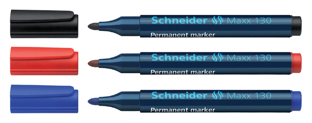 * Permanentmarker met clipdop en ronde punt. * Cap-off' inkt, dat wil zeggen dat de marker meerdere dagen zonder dop kan liggen zonder uit te drogen. * Kunststof houder. * Vrijwel reukloos, sneldrogend, lichtecht, veeg- en watervast. * Schneider is Emas gecertificeerd. * Schrijfbreedte 1-3mm. 10 stuk