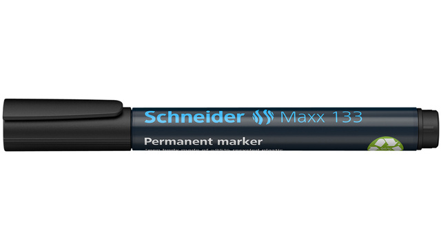 * Permanentmarker met beitelpunt, schrijfbreedte ca. 1 - 4 mm. * De speciaal ontwikkelde koppunt staat buiten de schachtrand en kan zelfs bij sterke druk niet in de marker gedrukt worden. * Praktische clipdop en 'Cap-Off' inkt, dat betekent dat de marker meerdere dagen zonder dop kan liggen zonder uit te drogen. * Vrijwel reukloos, sneldrogend, lichtecht, veeg- en watervast. * De behuizing bestaat voor 95% uit gerecycled plastic. * Schrijfkleur zwart.