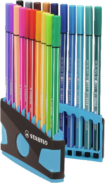 * Verkrijgbaar in 65 kleuren. Alle kleuren los verkrijgbaar.* De premium viltstift STABILO Pen 68 in een etui à 20 kleuren