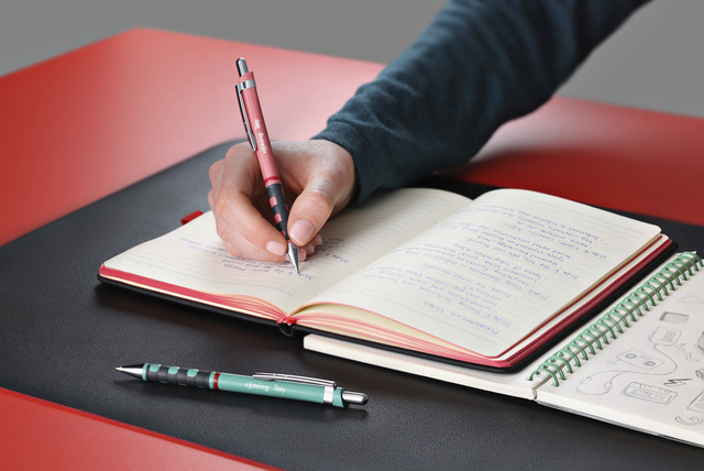* Schets vol vertrouwen met de rOtring Tikky Mechanical Pencil 0,5. * Een messing mechanisme zorgt voor een precieze loodvooruitgang en voorkomt loodbreuk, zodat elke lijn die je maakt scherp en duidelijk is. * De soft touch rubberen grip en het lichtgewicht driehoekige vat zorgen voor uitzonderlijk comfort. * Potloden zijn verkrijgbaar in nieuwe levendige kleuren voor een edgy, eigentijdse look. * Kleur van deze tikky is soft green.