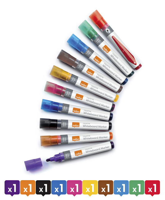 Whiteboardmarker Nobo Liquid ink rond assorti 3mm 10stuks